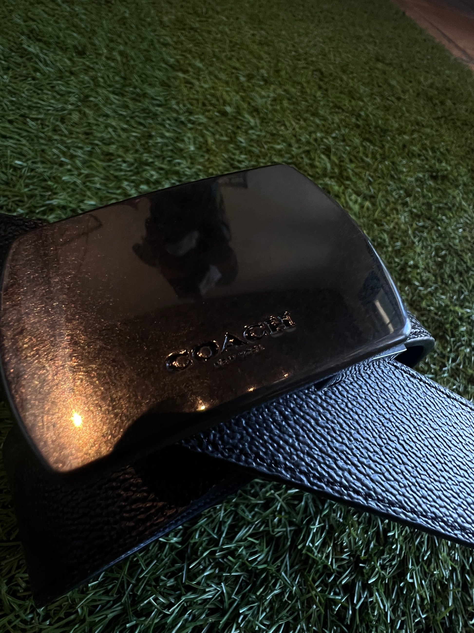 - Gunmetal buckle with Coach engraving